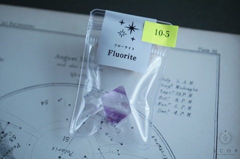 「商品説明」 フローライト(紫・無色透明 正八面体) 紫色と無色透明部分が、層状/しましまになっています。 |