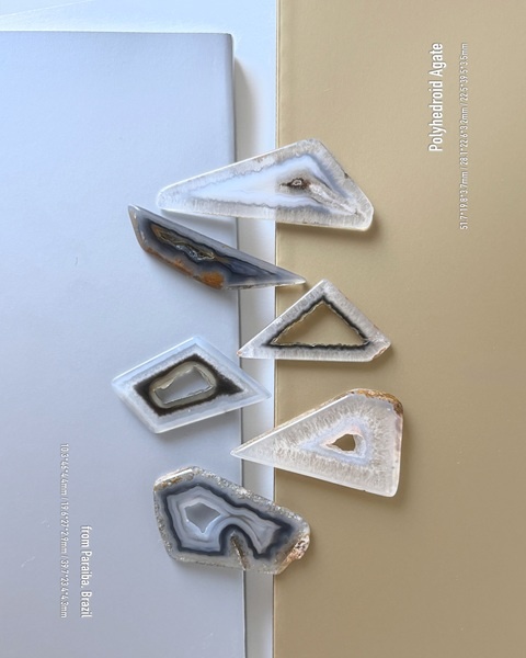 | 「商品PR」 ブラジル・パライバ州産ポリヘドロイドアゲート。独特な多面体を成した石です。他にも様々な模様の天然石を取り揃えてますので、ぜひ見にいらしてください😊 |