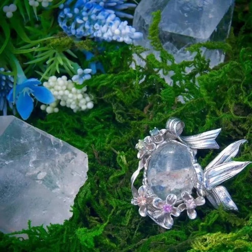 | 「お店の紹介」 シルバー・アクセサリー、鉱物、宝石彫刻 ジオラマ製作体験 お手持ちもしくは、会場でご購入の鉱物を使って小さなジオラマ作り体験が出来ます。所要時間20〜30分、料金2,000円(ケース代、フィギュア1つ、込み)・使用したい鉱物はご自身でご用意下さい。 12ヶ月の誕生花のペンダントです。 1月 水仙・2月 フリージア・3月 チューリップ・4月 桜・5月 鈴蘭・6月 薔薇・7月 百合・8月 朝顔・9月 竜胆(りんどう)・10月 ガーベラ ・11月 菊(ブバルディア)・12月 シクラメン誕生花として、生まれ月のお花や、好きな種類のお花。好きな花言葉でなど、お好きなお花を身につけてみませんか? 素材はシルバー。 お値段は税込み¥14,300〜。 誕生花に誕生石を組み合わせたペンダントも、鋭意製作中です! |